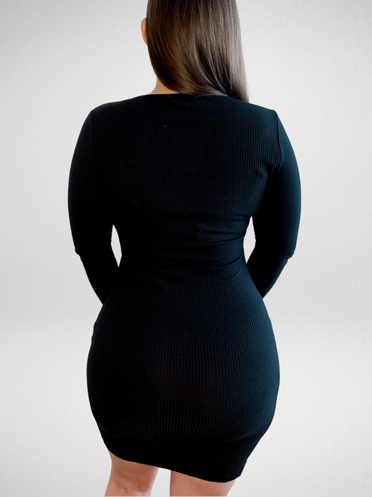 Casual But Cute Black Ribbed Mini Dress